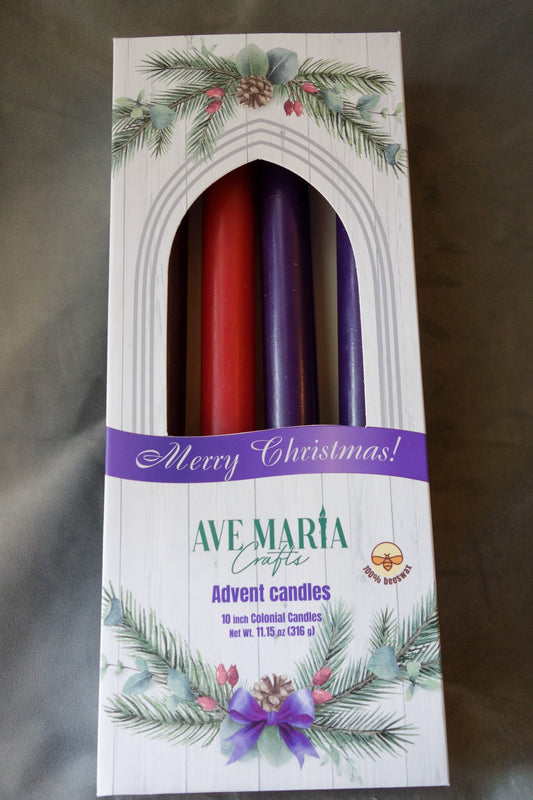 Beeswax Advent Tapers, Set of 4 10 inch Colonial Style
