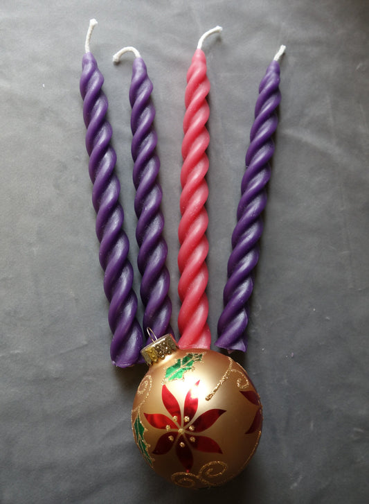 Shop our hand dyed, handcrafted Advent candles made from 100% pure US beeswax